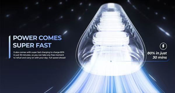 獨特電量顯示:機身上設計了獨有的4格刻度電量燈,隨時顯示剩餘電量和充電進度,讓您隨時掌握電量狀態,緩解電量未知的焦慮。